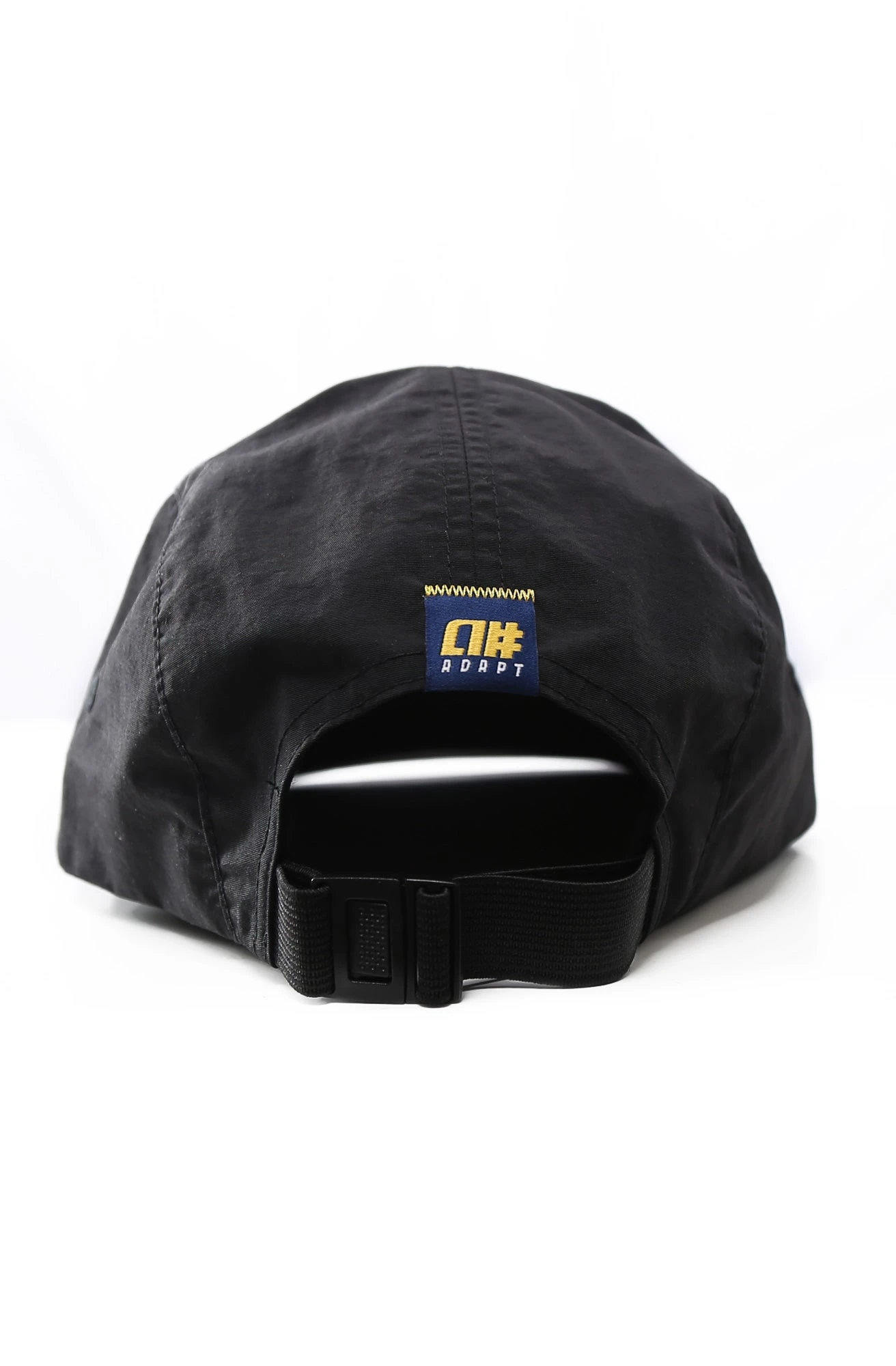 Lightweight, quick-dry, 100% recycled two-tone nylon 5-panel cap. Adjustable, one size fits most.
