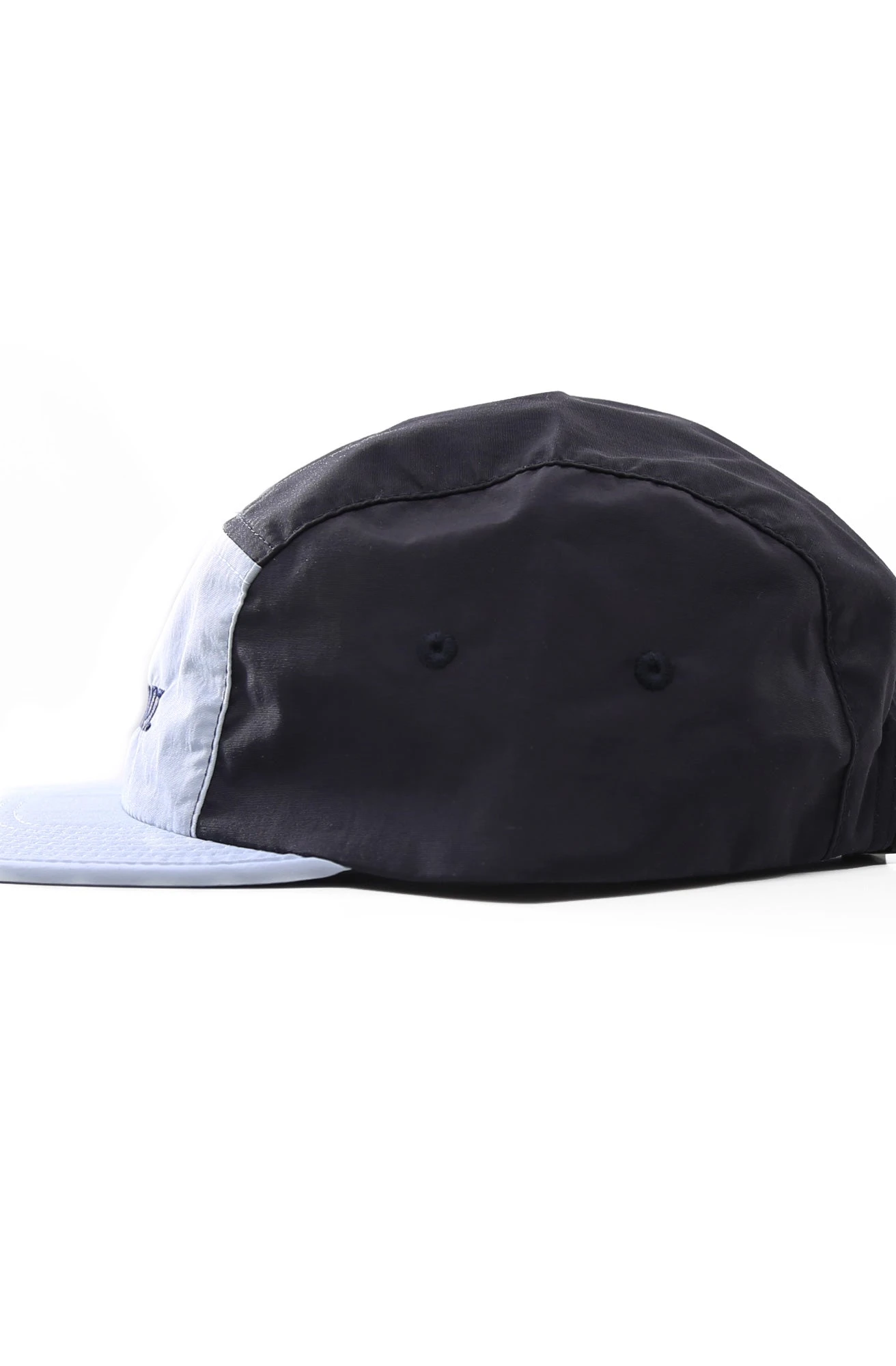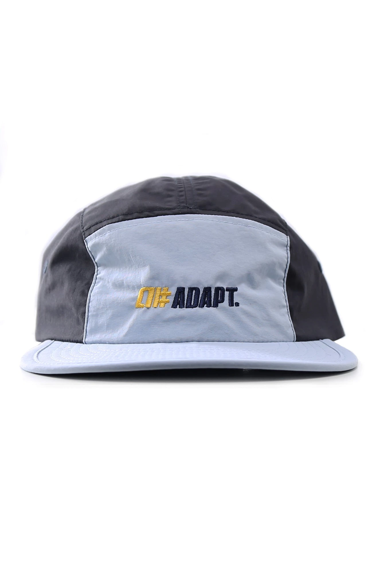Lightweight, quick-dry, 100% recycled two-tone nylon 5-panel cap. Adjustable, one size fits most.