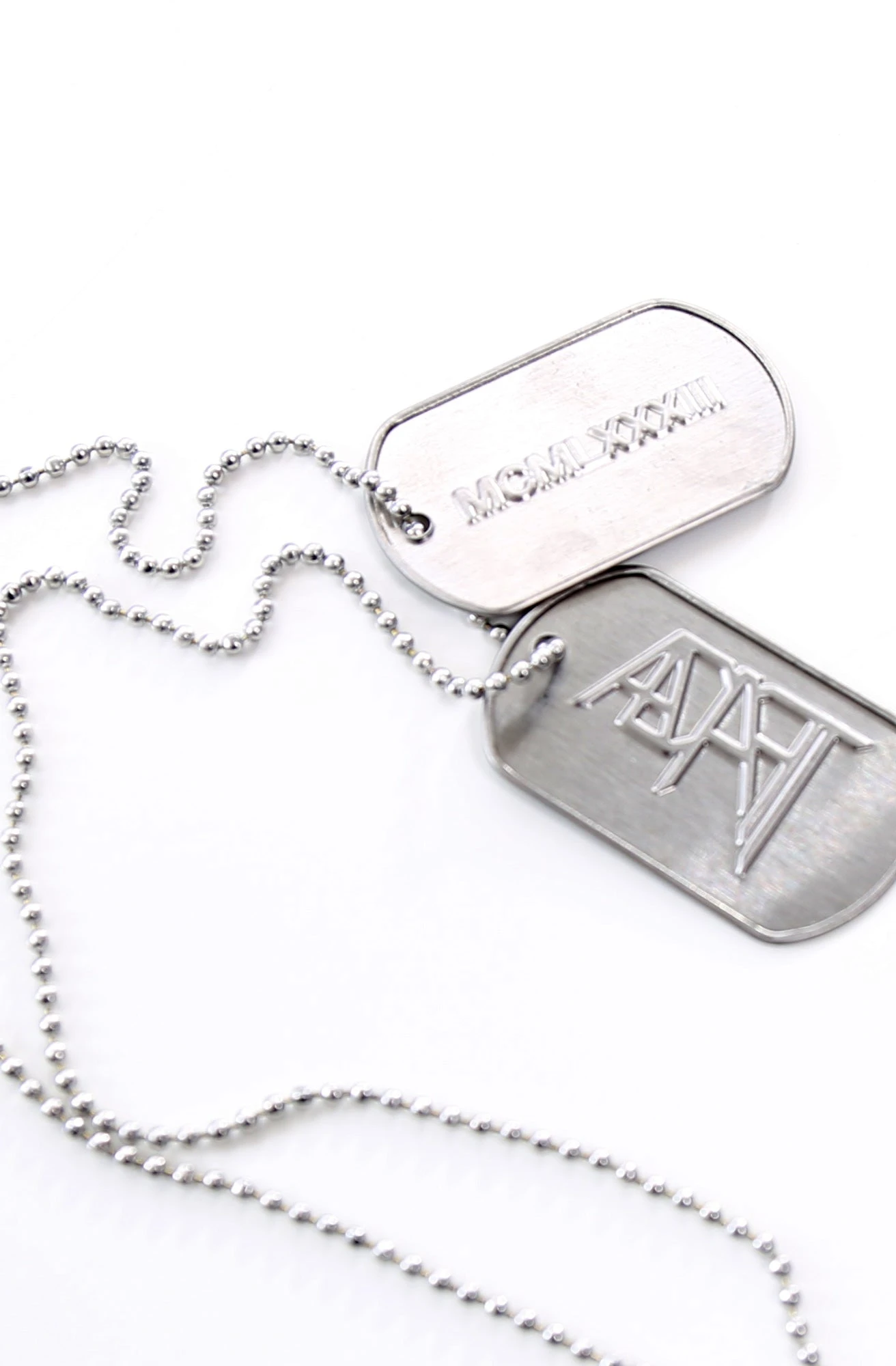 The Adapt Dog Tag set. 2 stainless steel rolled-edge tags with ball chain. Comes zip-loc packaged.