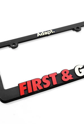 First and Gold. Fits all standard vehicles. Due to the nature of the production process, each frame varies slightly and may have small imperfections.