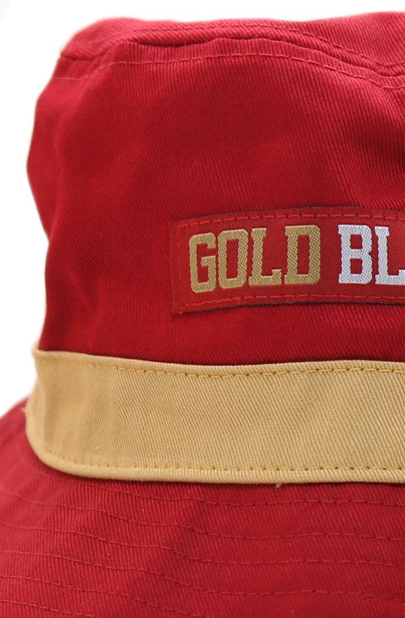 The Gold Blooded Bucket Hat. Very comfortable with 2 size options to get just the right fit. Features 100% cotton body with ‘Gold Blooded’ label stitched across front and contrasting band.