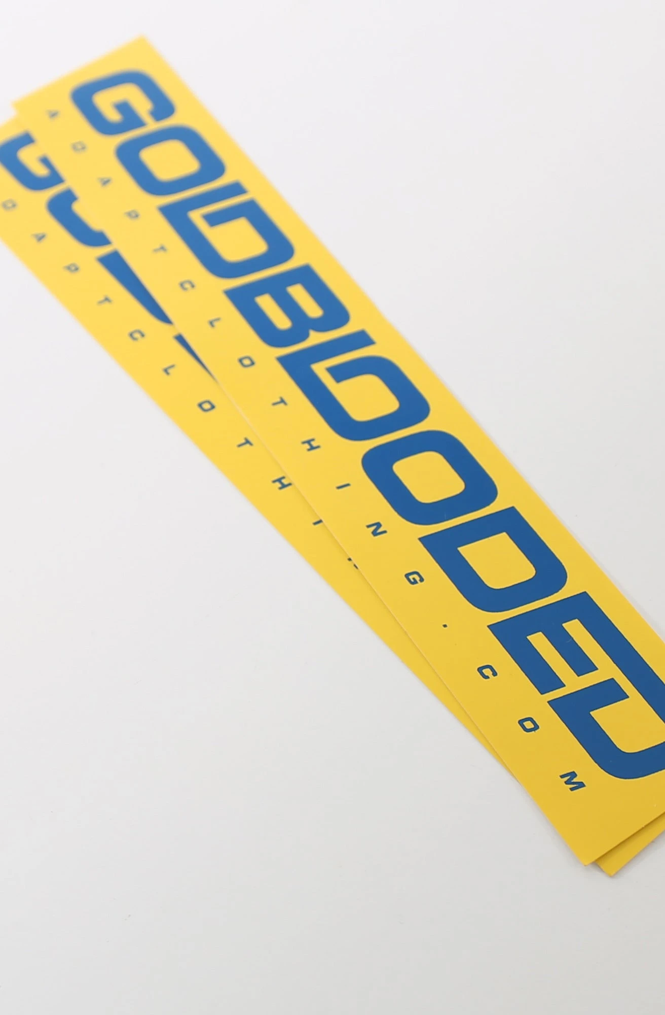 Gold Blooded RPM, in yellow with royal. Perfect for the Macbook or the whip. 2 high-quality stickers, measuring approximately 8.5″ wide.