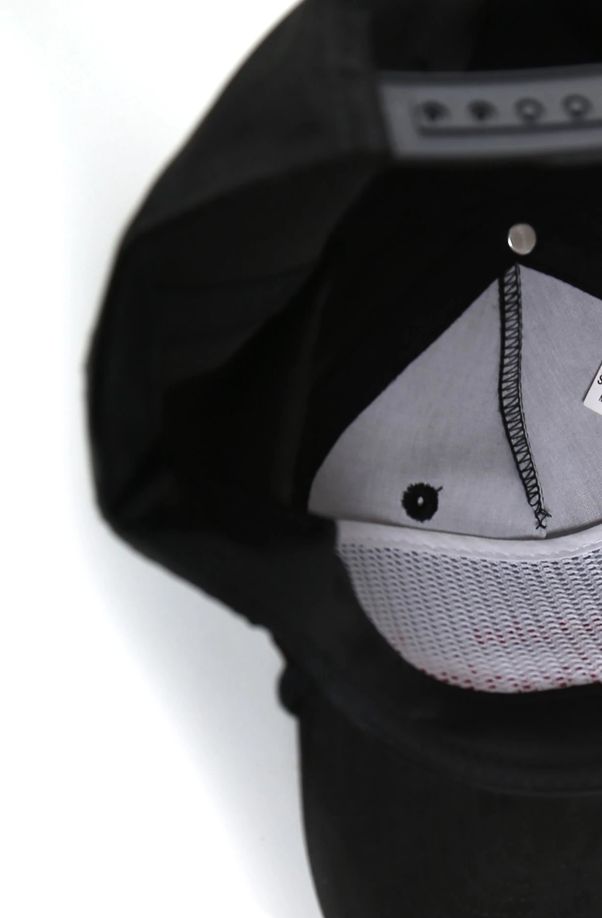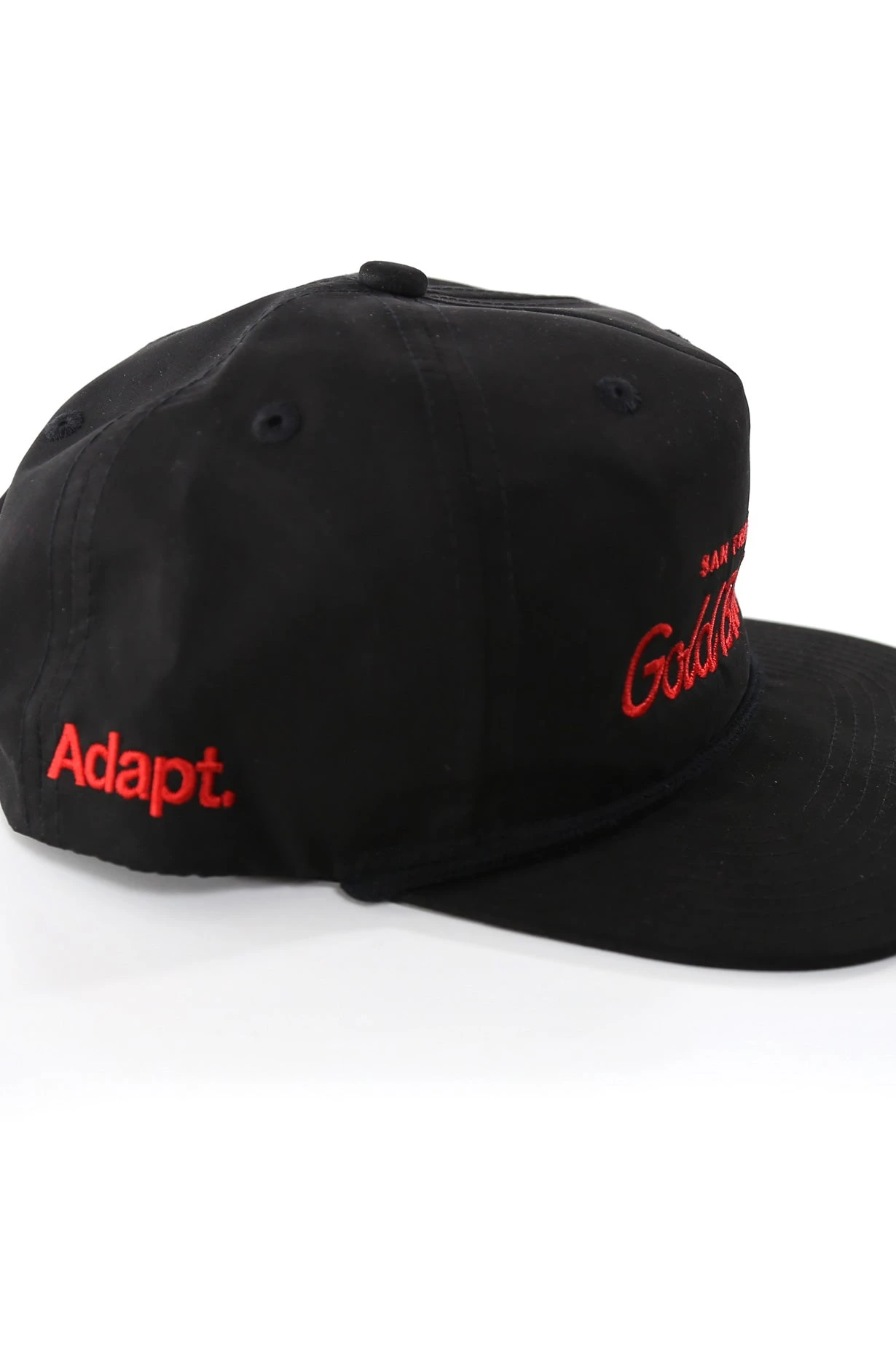 The Gold Blooded Script Snapback. Made of a lightweight cotton/poly blend. Water repellent, UPF 50+ material with braid at base of crown. Mesh interior front panel for support.