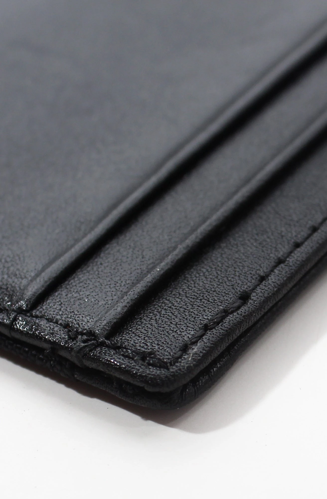 The Hamilton Card Wallet. Always keep your essentials at hand. Front features denier nylon card sleeve stitched over supple leather main compartment. Back features 2 additional leather card sleeves. Middle main storage area for cash. All compartments feature orange ripstop interior.Â