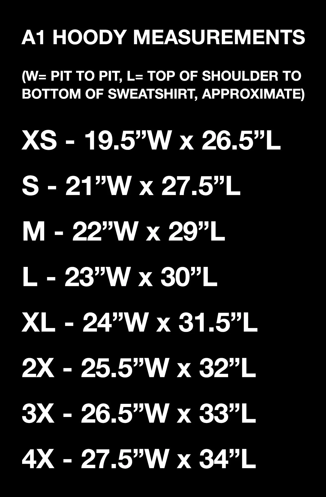 Please refer to the measurements product image for specific sizing information, as these differ from our standard hoodies.