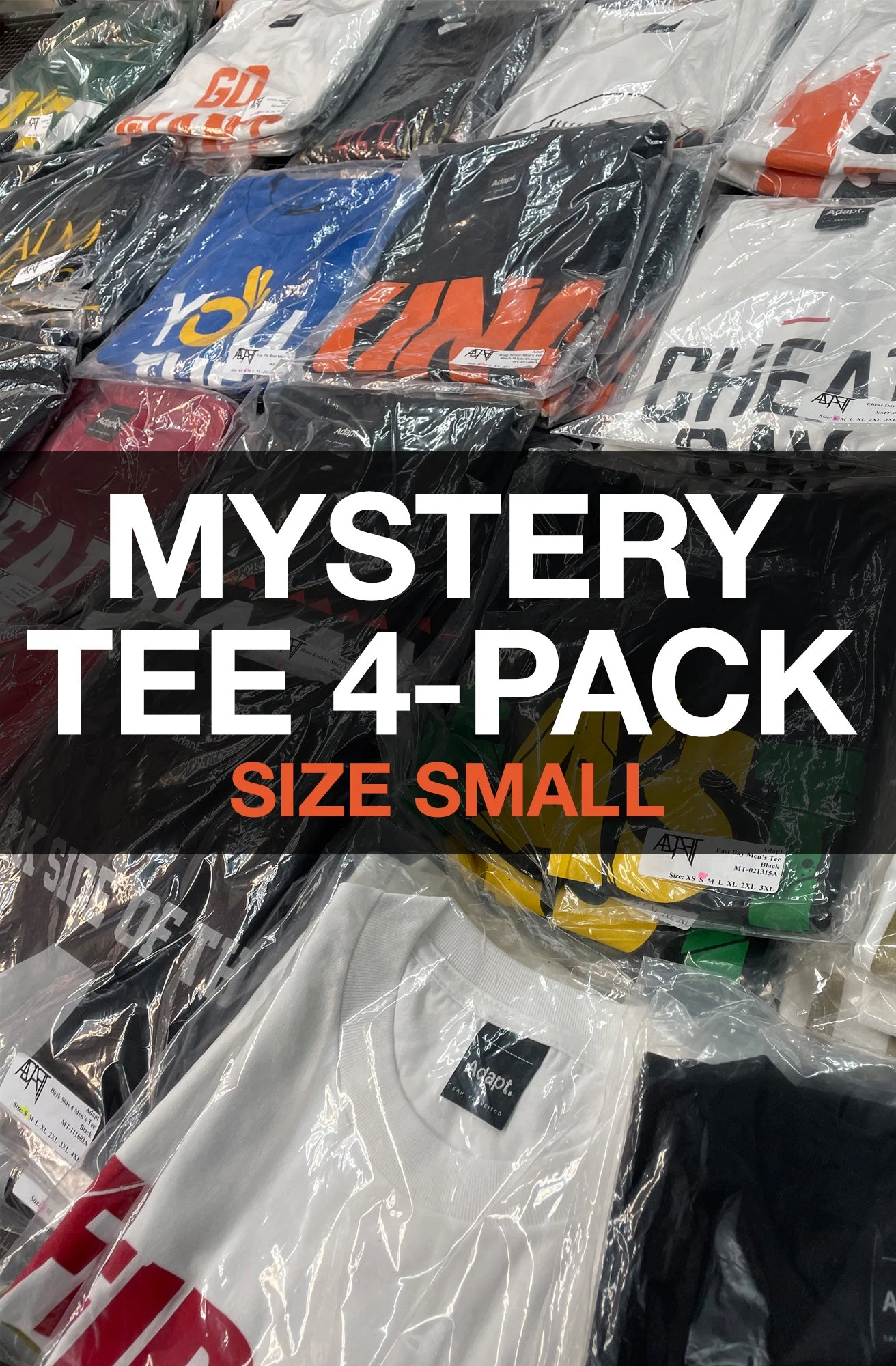 Mystery 4-pack of size Small Men’s tees. These items don’t exist anywhere else on the site so this is your last chance for these one-of-a-kind designs.