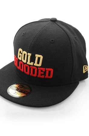 The Gold Blooded New Era from Adapt. The classic 59/50 construction you know and love. This hat has a true black body, with a red underbill. Detailings include 3D embroidered Gold Blooded logo across the front, gold New Era flag, CTA logo at side, and San Francisco text at back. As with most special projects, quantities on this cap are limited.