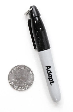 Sharpie X Adapt. Genuine custom Sharpie Fine Point Marker, in Pocket form. Comes with metal triangle ring attached to cap for easy connection to your keyring. Quarter not included, sorry.